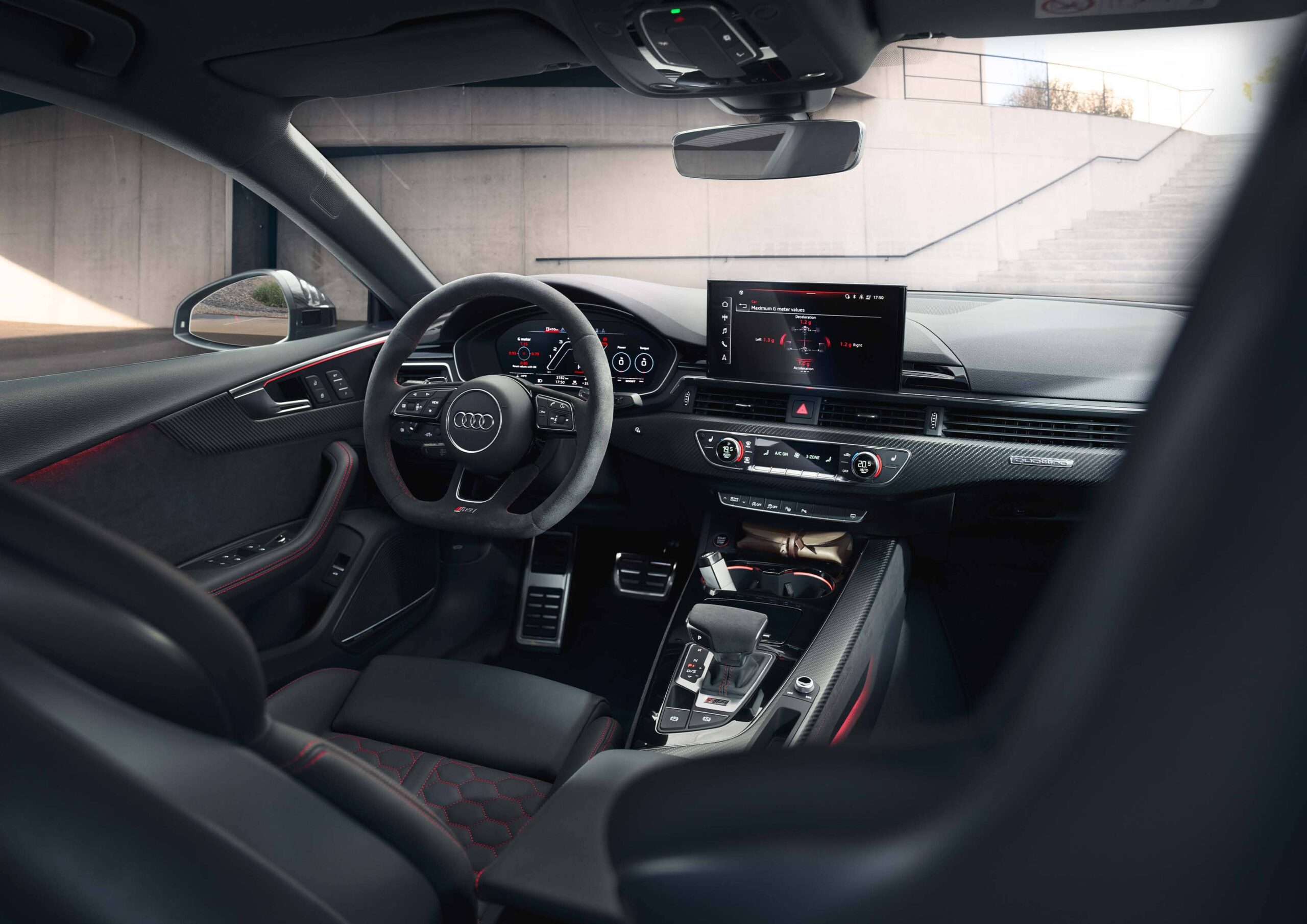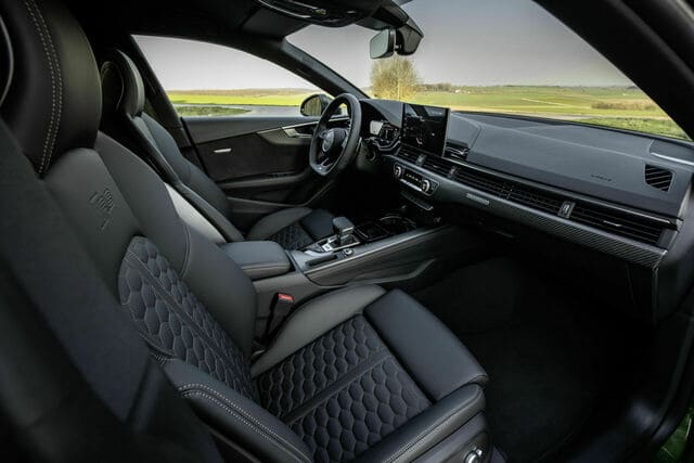 Step inside, and you’re greeted with a driver-focused cabin that combines luxury with motorsport DNA. Highlights include RS sport seats in fine Nappa leather, a flat-bottom steering wheel, Audi Virtual Cockpit Plus, and ambient lighting. The MMI touch display with connected car tech and 3-zone climate control elevate the in-cabin experience further.