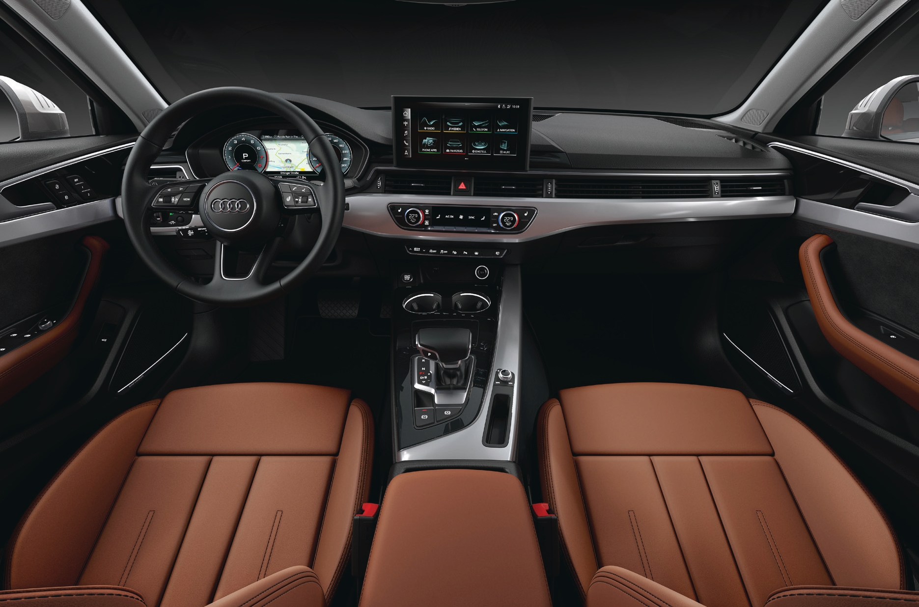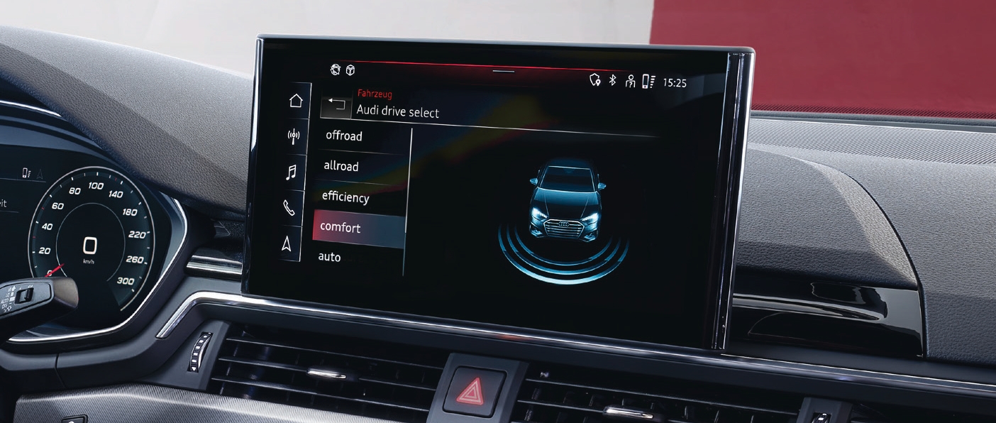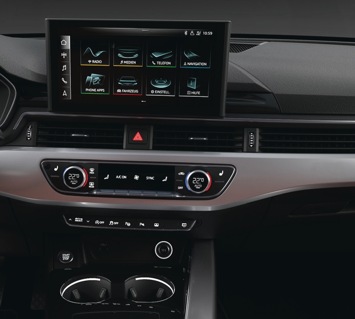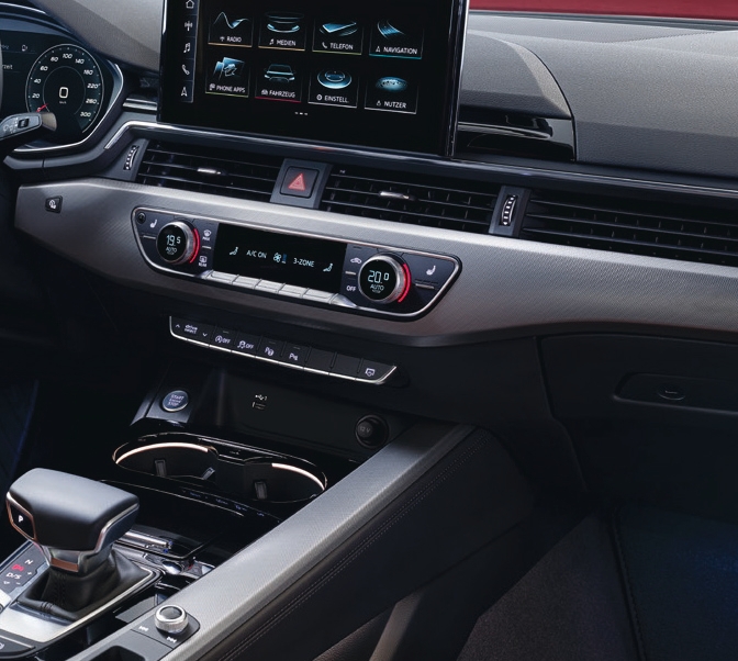 The A4 comes with a Virtual Cockpit, 10.1-inch MMI touchscreen, wireless smartphone connectivity, ambient lighting, and 3-zone climate control.