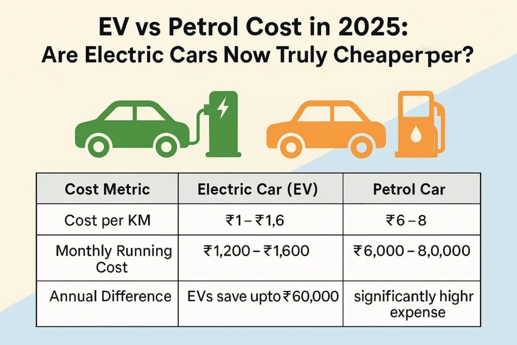 As EV adoption accelerates in 2025 and manufacturers push electric mobility harder than ever, the cost comparison between EVs and petrol cars has become one of the most searched automotive topics. Buyers want clarity, real numbers and practical analysis, not generic assumptions. This article uses a data-backed approach to highlight how EVs are outperforming petrol cars in cost efficiency, long-term value and overall ownership economics.
