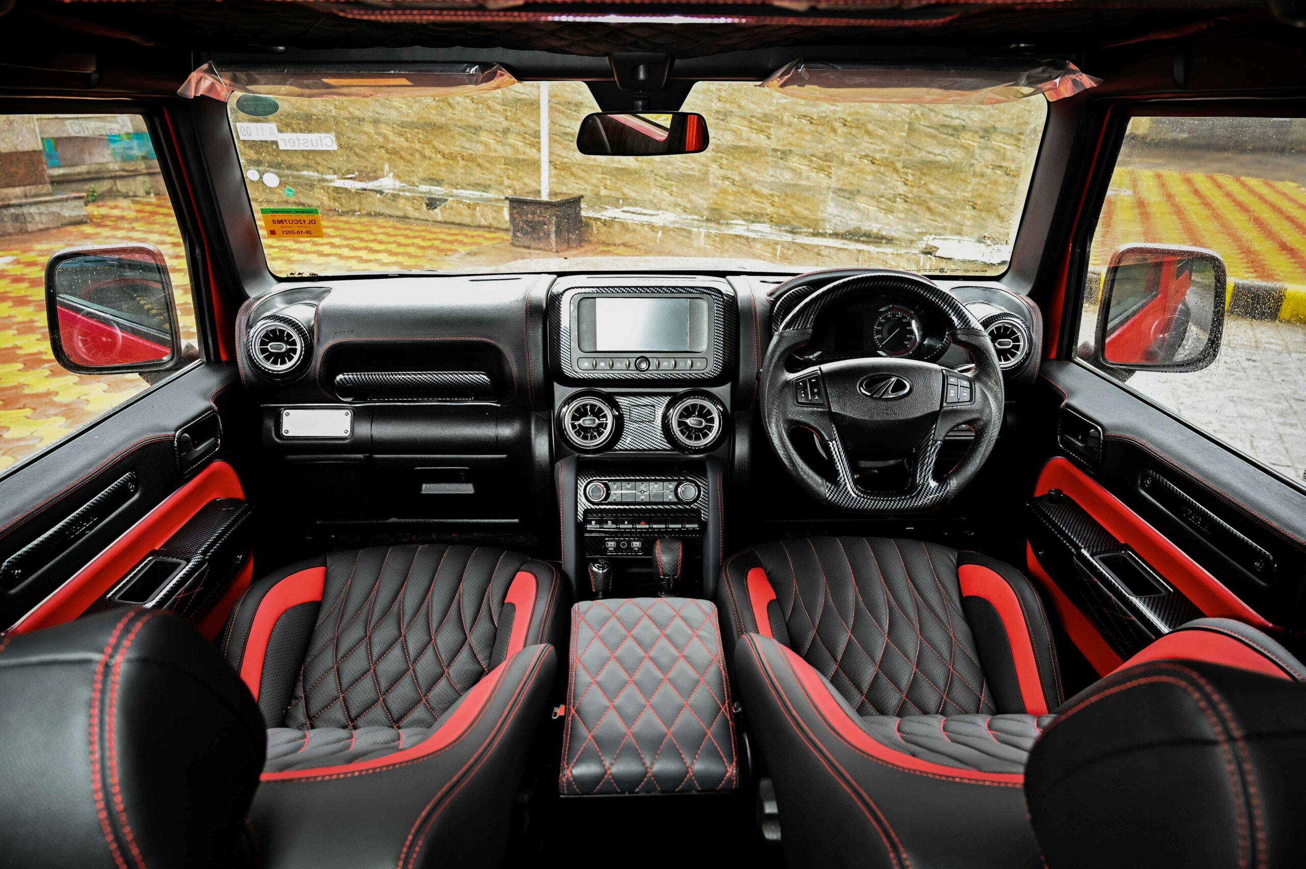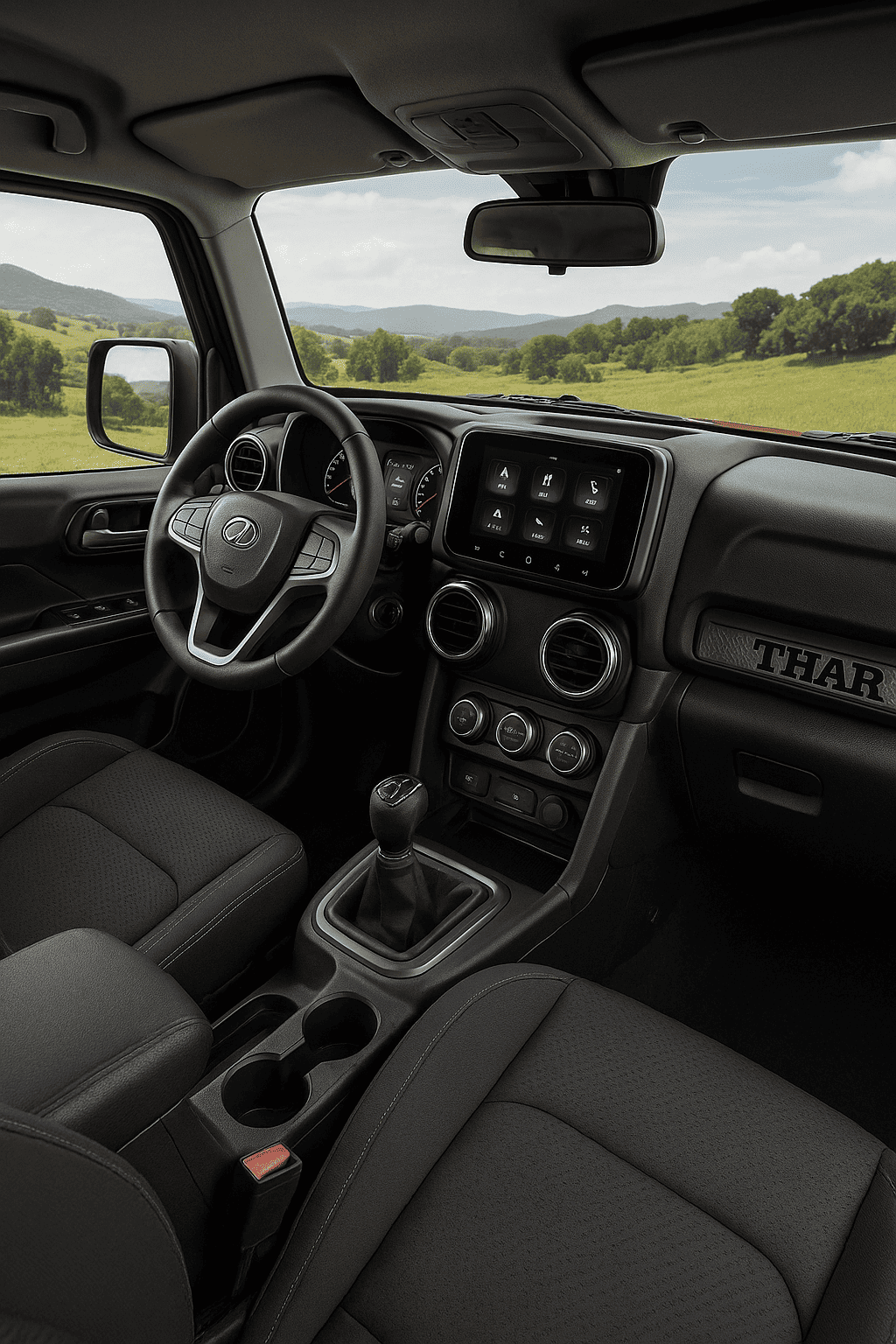 The Thar is available in both 4-seater and 6-seater configurations depending on the variant. Most popular models feature a 4-seater layout with two front and two rear seats.