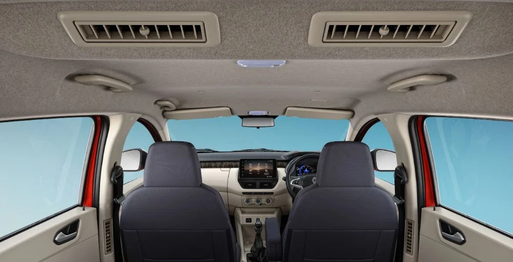 Inside the cabin, the Renault Triber impresses with its modern dual-tone dashboard, LED instrument cluster, and an 8-inch touchscreen infotainment system with Apple CarPlay and Android Auto. Comfort features like AC vents for all rows, keyless entry, push-button start, and ample storage options enhance convenience for large families. The premium feel is further complemented by thoughtful design and quality materials.