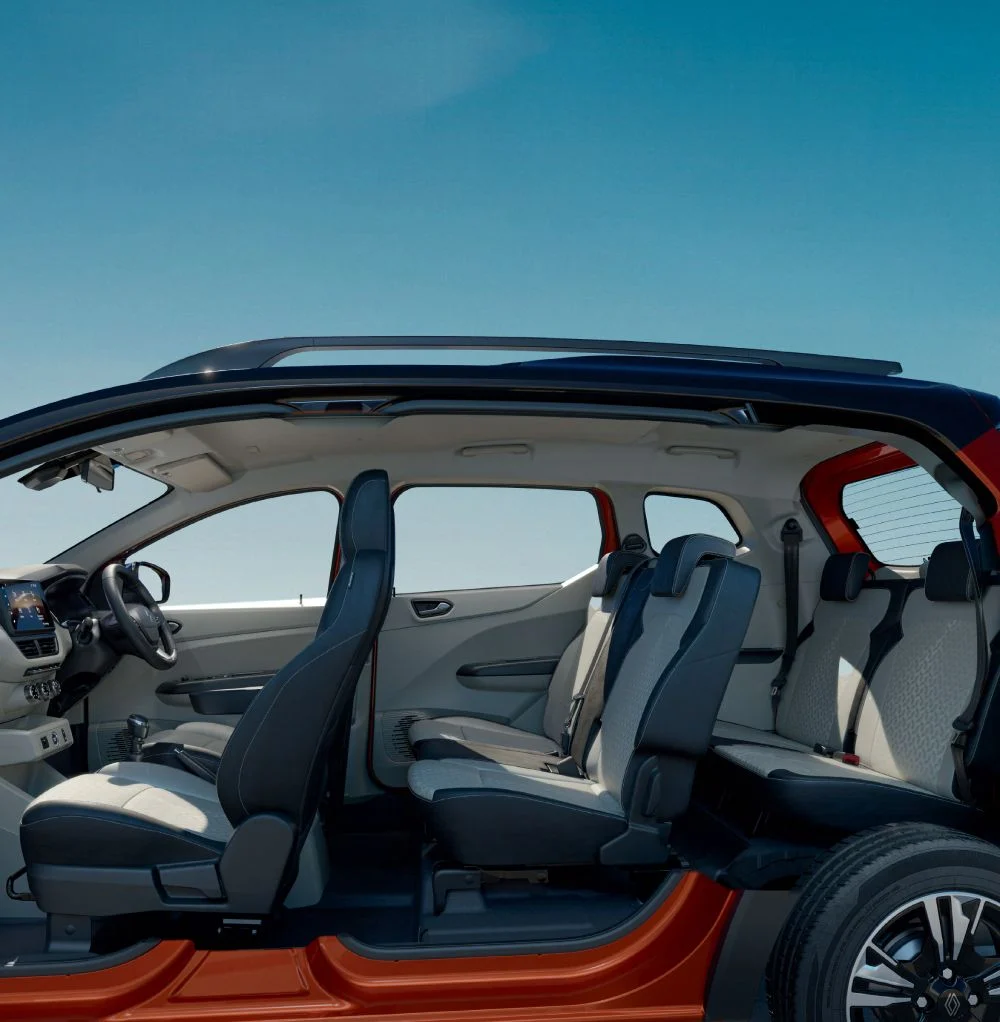 The Renault Triber stands out in the sub-4-metre MPV segment with its blend of practicality, style, and affordability. Designed specifically for Indian families, it offers a rare combination of spacious 7-seater flexibility and compact city-friendly dimensions. Its modular seating layout with slide, recline, and fold options makes it versatile enough to switch between passenger and luggage space with ease.