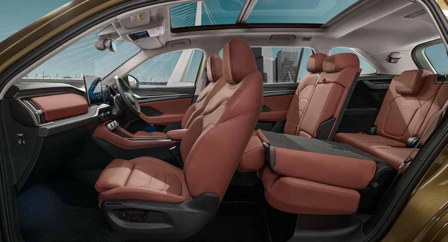 Under the hood, it houses a robust 2.0L TSI turbocharged petrol engine delivering 190 PS of power and 320 Nm of torque, paired with a 7-speed DSG automatic gearbox and 4×4 capability. This combination ensures seamless highway cruising and confident off-road performance. The suspension setup, tuned for comfort and control, makes long journeys effortless for families and adventurers alike.