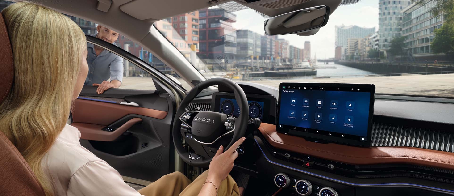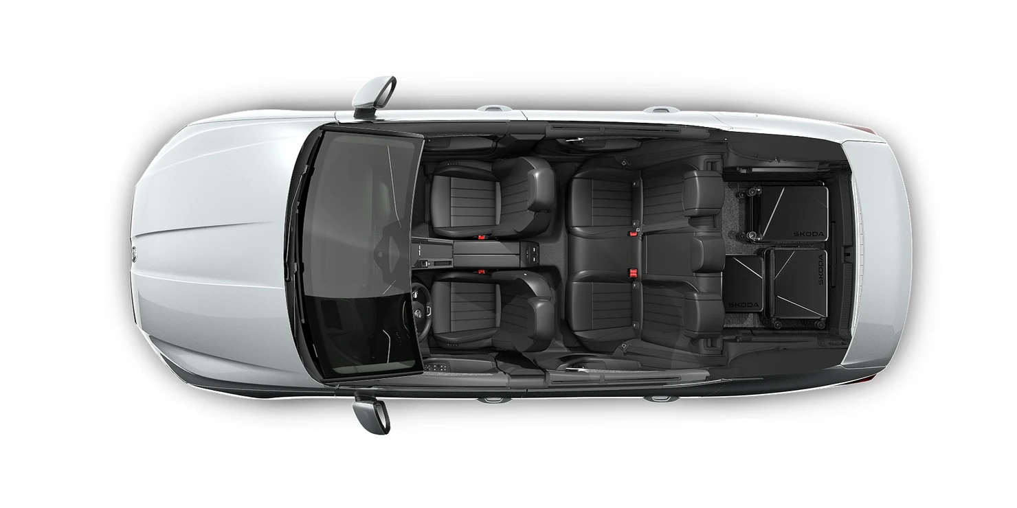 Step inside, and the Superb greets you with a plush, feature-rich cabin finished in soft-touch materials and leather upholstery. The driver-centric dashboard integrates a large touchscreen infotainment system with Apple CarPlay and Android Auto, a customizable Virtual Cockpit, 3-zone climate control, ventilated seats, and a panoramic sunroof. Ambient lighting, electrically adjustable front seats with memory function, and a Canton sound system further elevate the in-cabin experience.